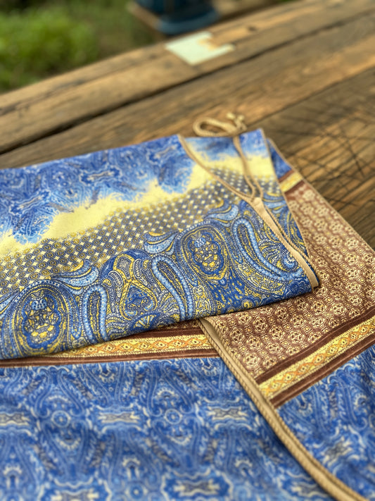 Handmade Blue Silk Kabalakhi – Unisex Hooded Scarf by Moikhvie Kabalakhi